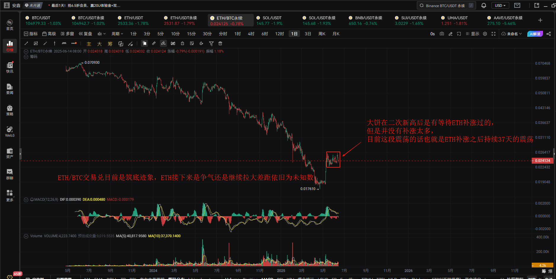 În prezent, perechea de tranzacționare ETH/BTC are deja semne de formare a unui fund, dar ETH este greu, așa că vârful zilnic al ETH este estimat între 3000-3500,
