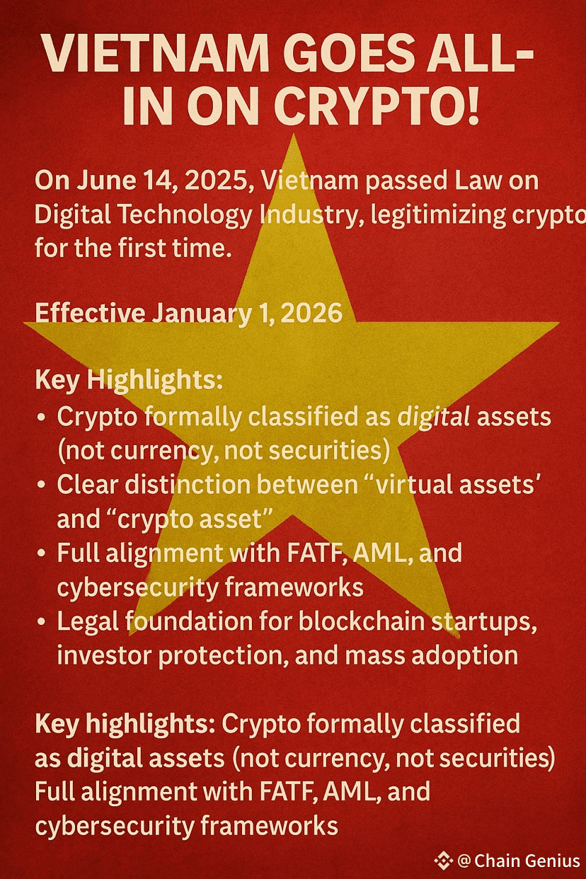 📅 Effective January 1, 2026 — crypto assets in Vietnam will have clear, recognized legal status. No more grey areas. Vietnam’s sending a global message: this market is ready for serious scale.