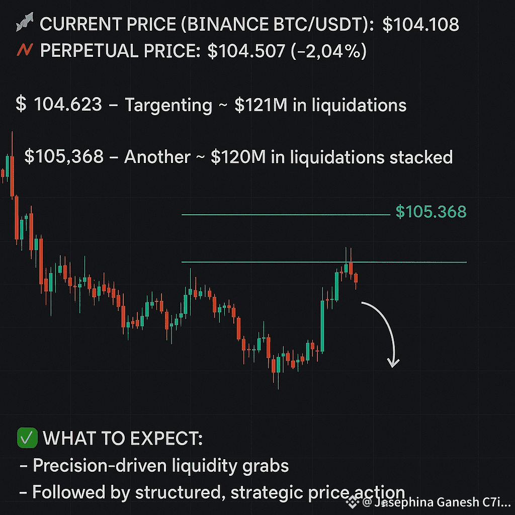 🔹 Current Price (Binance BTC/USDT): ~$104,108 📉 Perpetual Price: $104,507 (-2.04%)