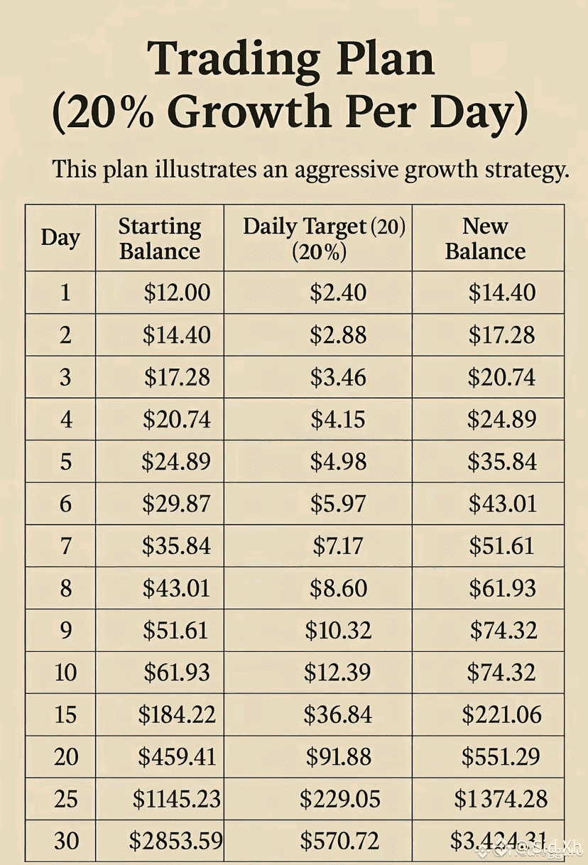 ➡️ In just 30 days, $12 can grow into $3,424.31 if you stick to the 20% daily target.