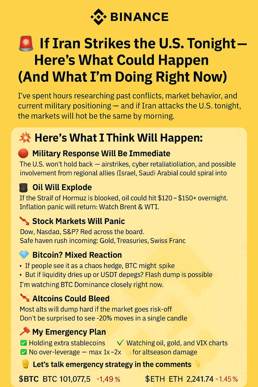 Am petrecut ultimele câteva ore adânc în cercetare — studierea conflictelor anterioare, reacțiile pieței și postura militară actuală. Dacă Iranul atacă forțele sau teritoriul SUA în această noapte, lumea s-ar putea trezi la un peisaj financiar foarte diferit.