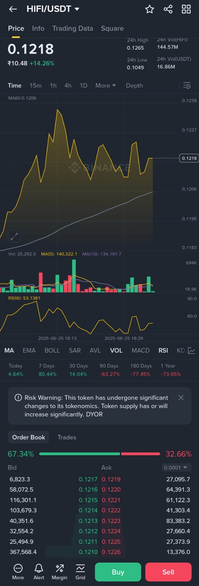 HIFI (Hifi Finance) se tranzacționează în jur de \$0.123, în creștere cu ~16% în ultimele 24 de ore, cu o fluctuație intraday de la ~\$0.106 la \$0.125.