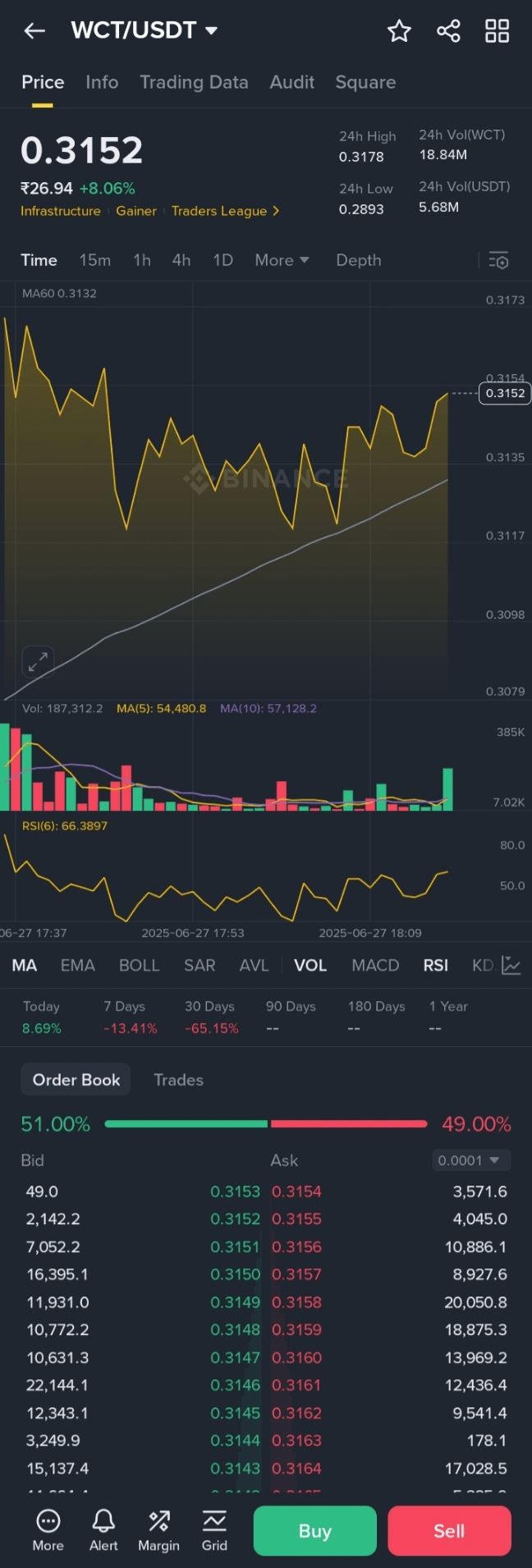 Tendință pe termen scurt optimistă: Prețul a ieșit recent și a retestat zona \$0.57–\$0.59 în analiza pe termen mediu, acum consolidându-se; RSI \~68–69 indică un moment puternic, dar echilibrat.