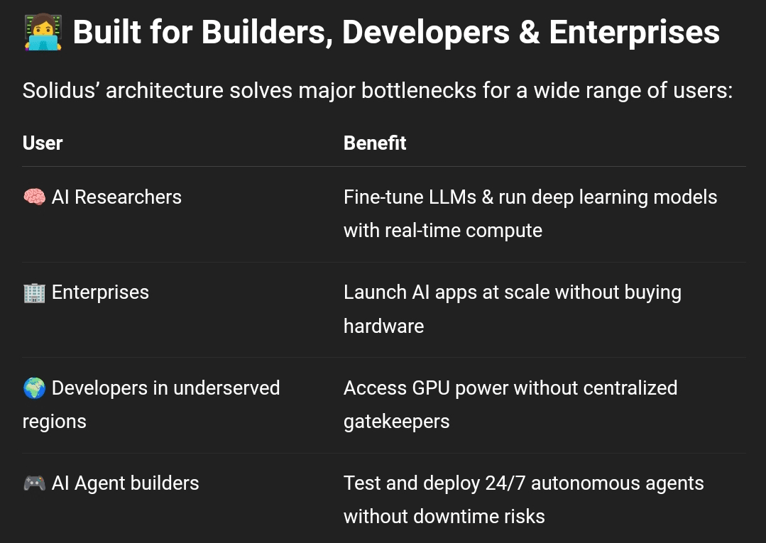 Pe când mulți din domeniul AI se concentrează pe aspecte vizuale, Solidus se concentrează pe fundamente. Infrastructură durabilă. Sisteme scalabile. Calcul accesibil.