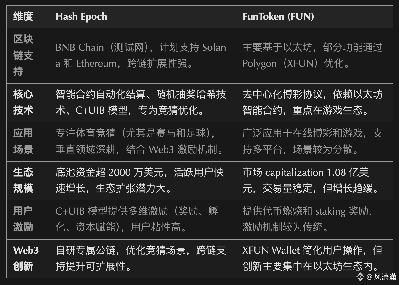 FUN 作为成熟项目,已有稳定用户基础和市场认可,Hash Epoch 需在竞争中快速建立信任。