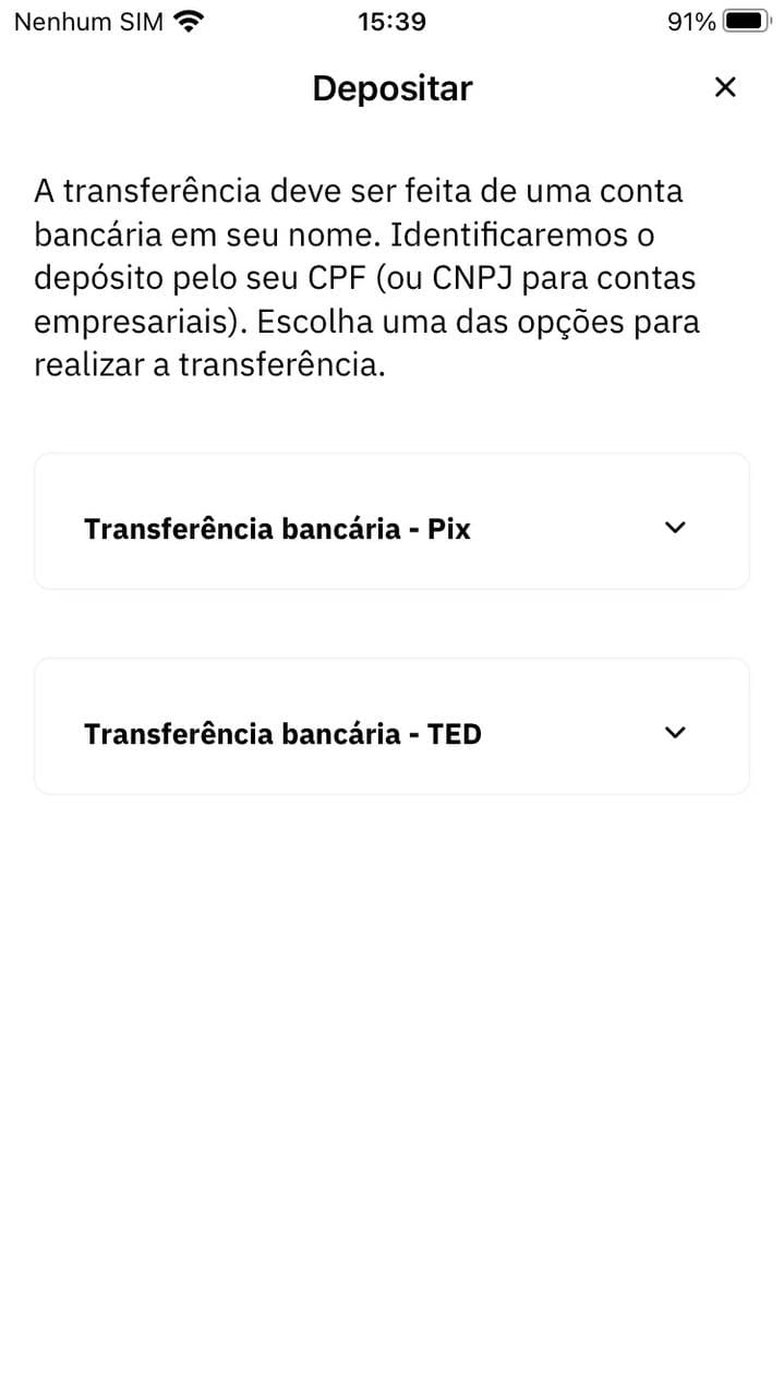 Cu toate acestea, opțiunile sunt limitate: se acceptă doar depozite prin Pix sau transfer bancar tradițional (TED), fără suport pentru card sau P2P.