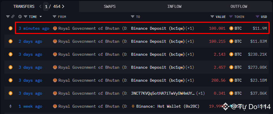 $BTC #BTCBreaksATH #MemecoinSentiment #StrategyBTCPurchase #ETHBreaks3k #BinaneceTurns8 Theo ChainCatcher (nguồn: Onchain Lens), một địa chỉ ví được gắn nhãn thuộc Chính phủ Bhutan vừa thực hiện giao dịch đáng chú ý: