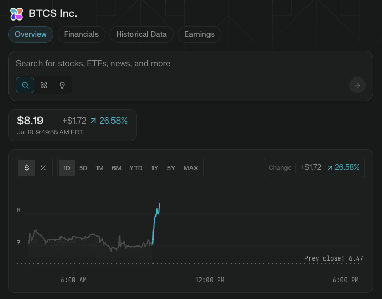 Acțiunile au crescut cu 28%+ de când a apărut vestea — și urmăresc momentumul ETH