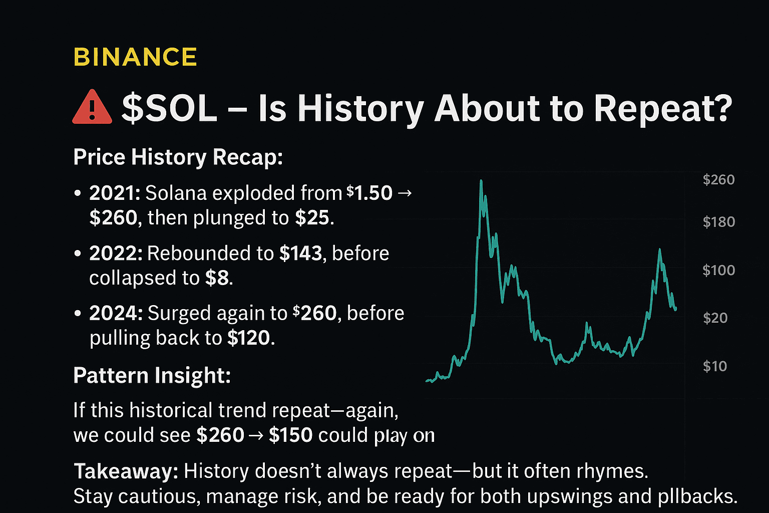 Istoria nu se repetă întotdeauna — dar adesea rimează. Fii precaut, gestionează riscurile și fii pregătit pentru atât creșteri cât și scăderi.$SOL