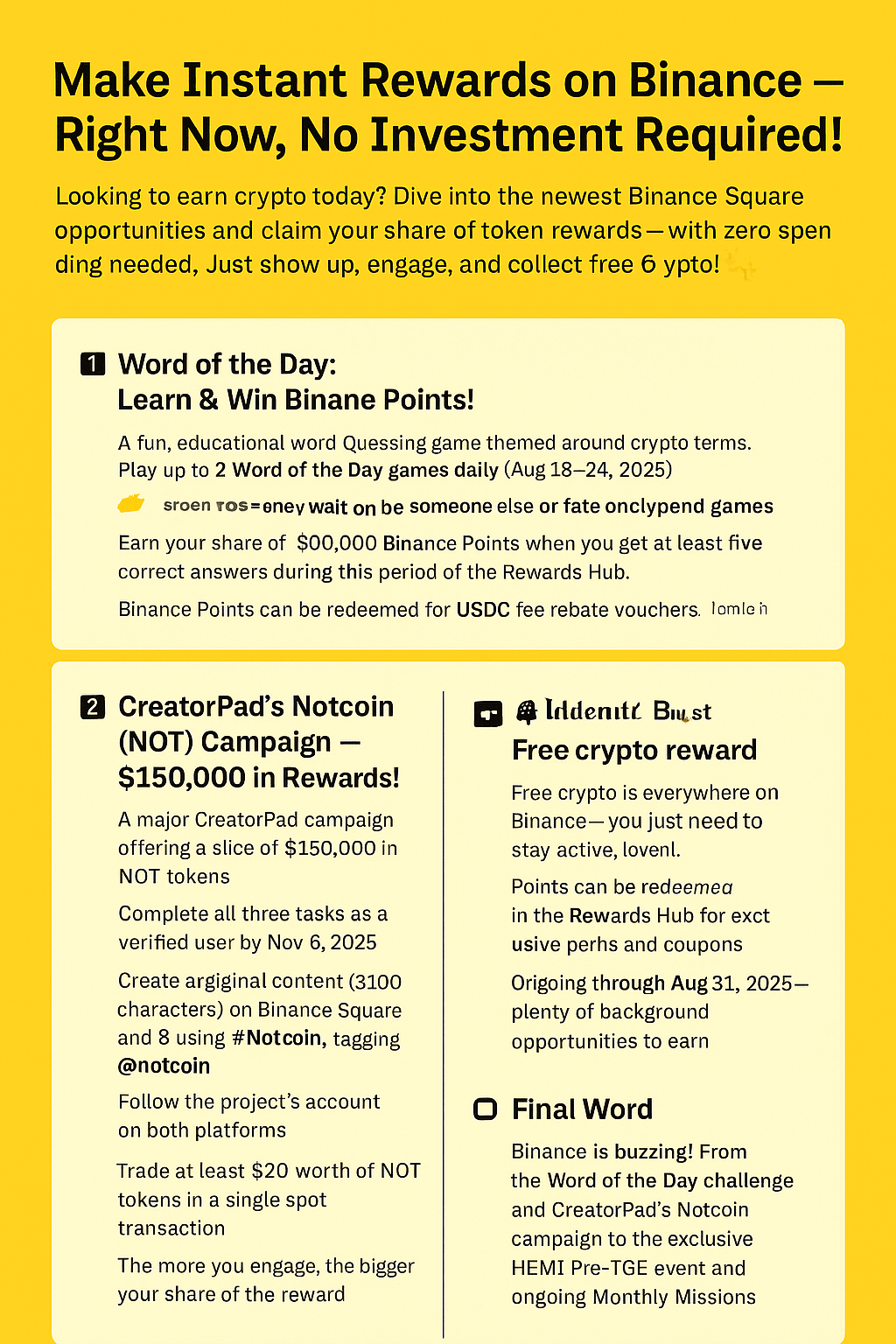 1. Creează conținut original (≥100 de caractere) pe Binance Square și X folosind #Notcoin, etichetând @notcoin