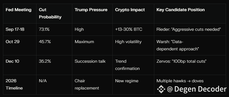 The stakes extend beyond traditional monetary policy. Trump's 11-candidate strategy suggests any Fed resistance to aggressive easing could trigger accelerated leadership changes, creating policy uncertainty that paradoxically benefits decentralized assets like Bitcoin.