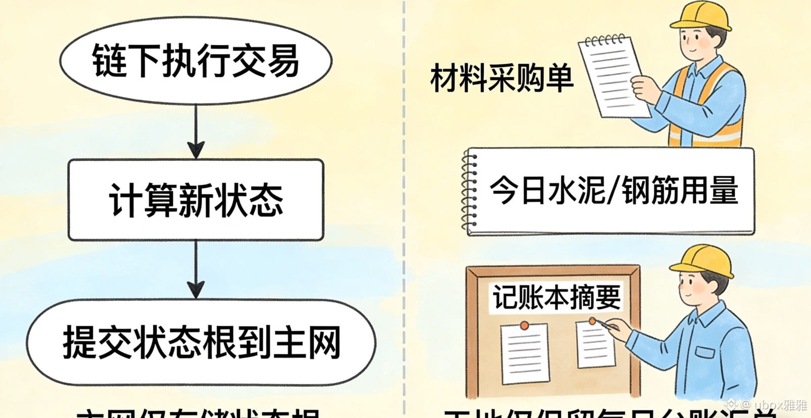 区块链扩容争论十年,主流Rollup始终走全量上链路线:将每笔交易、状态变更、合约调用全部压缩回传主网,如同工地每道工序全程录像监理。安全可核验,但成本居高不下,用户要为99.9%场景用不上的极端安全兜底付费,主网资源也被大量冗余数据挤占。