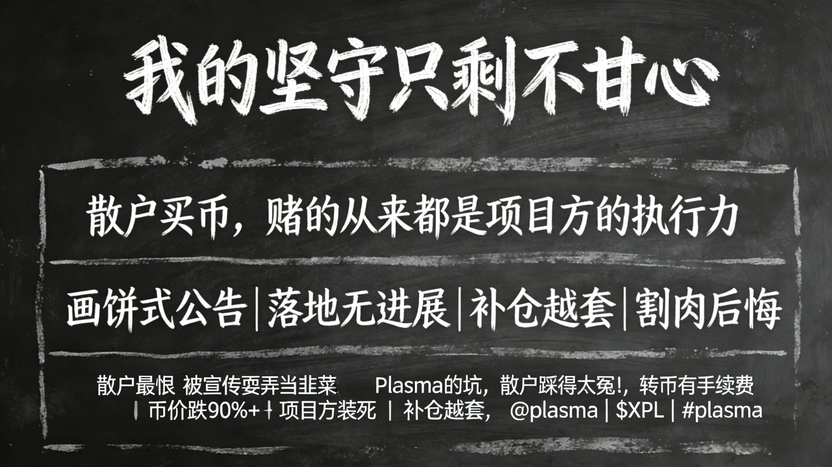 我自己现在进退两难,割肉吧,亏的都是真金白银,实在舍不得;不割吧,看着币价一路阴跌,项目方装死到底,心里堵得慌。Plasma的零手续费,难道只是骗散户入场的噱头? 跌了90%多,@Plasma 连个护盘动作、一句对散户的交代都没有,真的把我们当接盘侠吗?机构背书的红利,难道散户就活该一点都沾不上?
