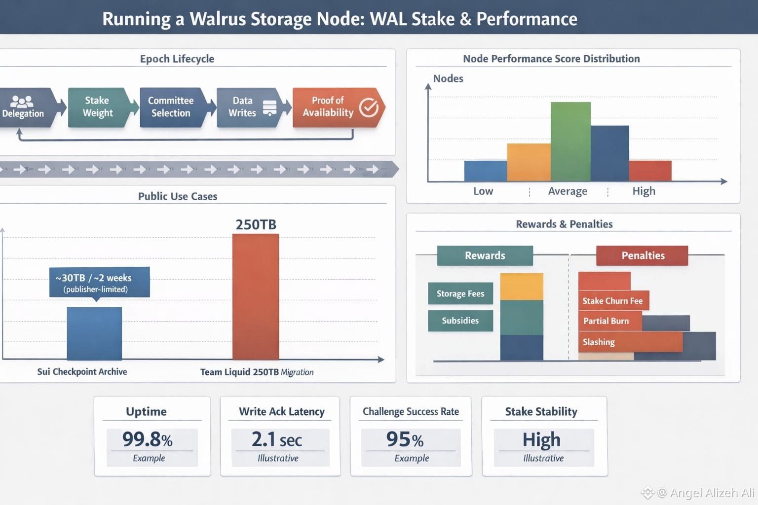 That’s where performance becomes a daily discipline. Uptime matters, but so does how your node behaves under pressure: how quickly it acknowledges writes, how reliably it responds when challenged to prove it still holds the right fragments, and how often it drops out when bandwidth spikes. Walrus’s own design documents talk about committees evolving between epochs and rewards tied to behavior and reliability, and the whitepaper is blunt that nodes are rewarded or punished based on their actions throughout an epoch, including correctly answering challenges. Incentives matter, but operations are where trust is earned. There’s a quiet fairness in that. It doesn’t care about your narrative; it cares about your evidence.