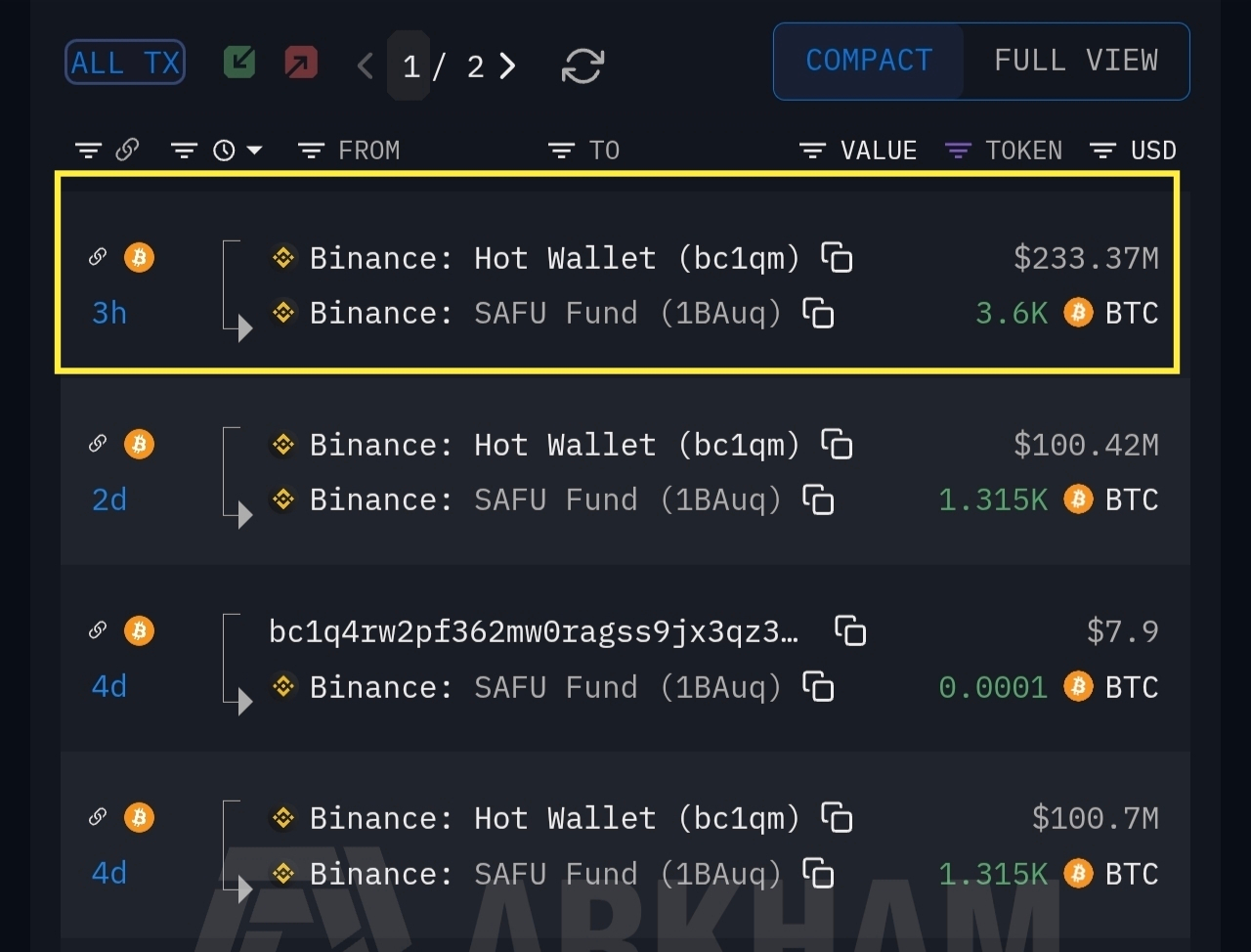 Pe 30 ianuarie, Binance a anunțat că va converti rezervele de stablecoin de 1 miliard de dolari ale fondului SAFU în Bitcoin, cu finalizarea planificată în termen de 30 de zile.
