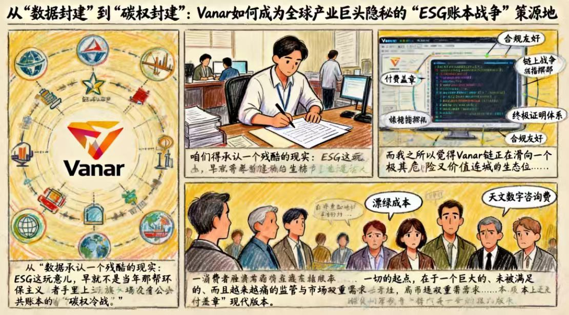 这条路无疑布满了伦理的荆棘和现实的铜墙铁壁。它会遭遇既得利益集团(传统评级机构、咨询公司)的疯狂反扑,会面临法律上关于“市场操纵”和“恶意做空”的灰色指控。但历史的钟摆正在摆向“透明”和“问责”。当“漂绿”的成本越来越高,当投资者和消费者对“可信绿色”的需求越来越刚性,一个能提供终极验证方案的底层设施,其吸引力是致命的。Vanar可能自己都没想这么远,但它技术栈的特性,恰好把它放在了这场即将到来的、静默但惨烈的“碳权封建战争”风暴眼上。它不再是一个选择,而是一个一旦有人开始使用,其他人就不得不跟进的战略必需品。这种“必需品”的估值逻辑,和我们熟知的任何公链叙事,都截然不同。