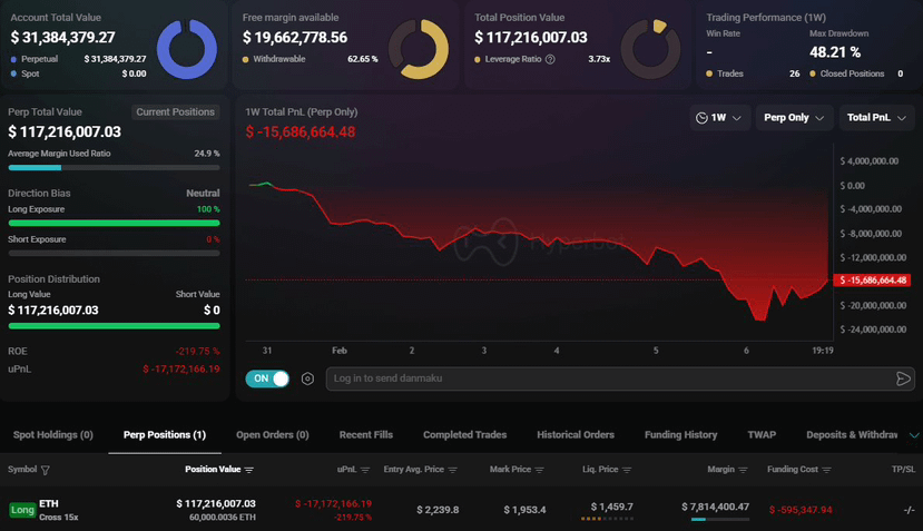 Cu toate acestea, un efect de levier ridicat vine întotdeauna cu un risc ridicat. Dacă ETH scade la 1,459$, întreaga poziție ar putea fi lichidată.