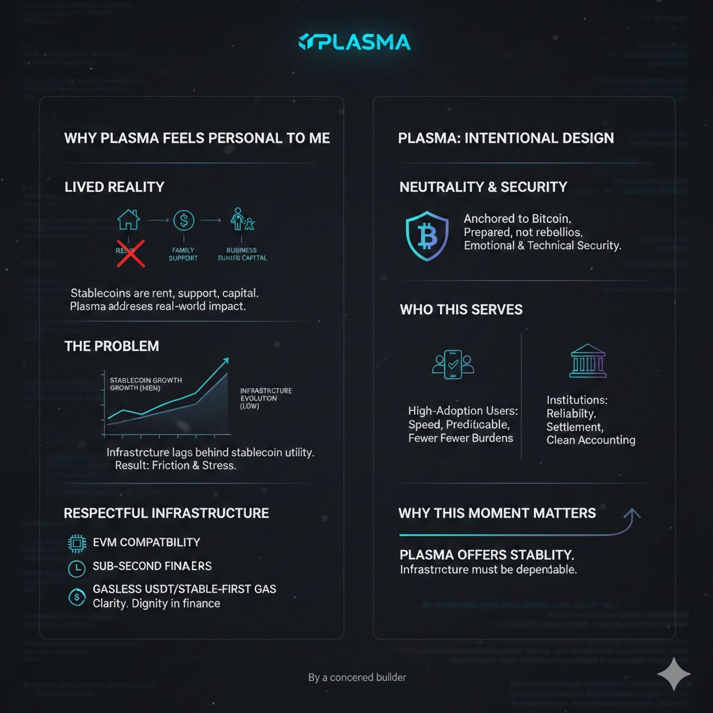 Plasma made me pause because it starts from lived reality. Stablecoins are no longer just trading tools. For millions of people, they are rent money, family support, business capital, and financial survival. I have seen this firsthand. When systems fail, fees spike, or transactions hang in limbo, it is not abstract. It affects real lives.