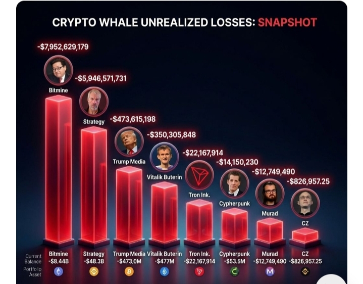 The Crypto whale unrealized losses chart is brutal at first glance. Red bars, nine-figure losses, and some of the biggest names in crypto sitting deep underwater. But look closer — this data doesn’t scream collapse. It signals conviction at scale.