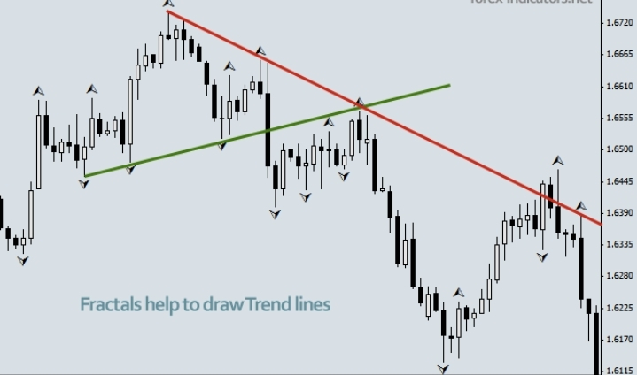 En lugar de adivinar dónde conectar los puntos, utilizas las puntas de los fractales. Al unir dos fractales alcistas consecutivos, obtienes una línea de tendencia bajista sólida. Esto elimina la subjetividad de conectar sombras de velas aleatorias.