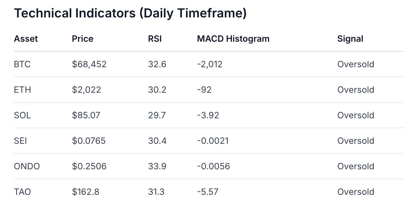 Beta Play with Oversold Conditions: ETH at $2,022 with 30.2 RSI provides attractive entry for a bounce to $2,400-2,600 resistance zone.