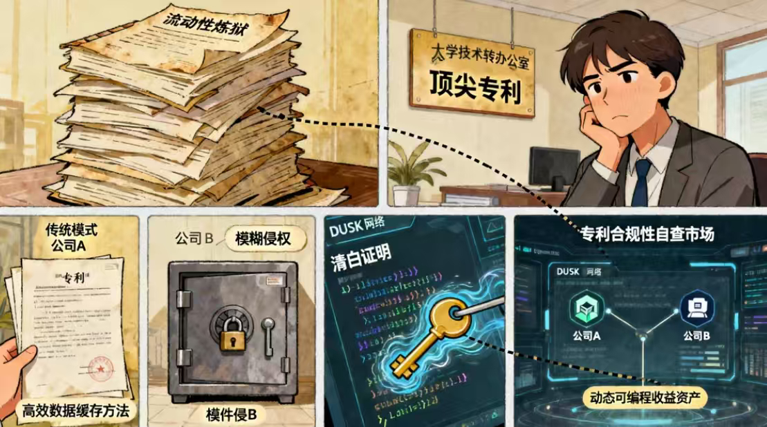而当我深入研究#dusk 的技术,特别是它如何将复杂逻辑的合规性变成可验证的证明时,我脑子里“叮”一声:这不就是为解锁知识产权流动性量身定做的“钥匙”吗?DUSK可能无意中,为知识产权从“静态法律资产”向 “动态可编程收益资产” 的转型,提供了一套致命的密码学工具箱。