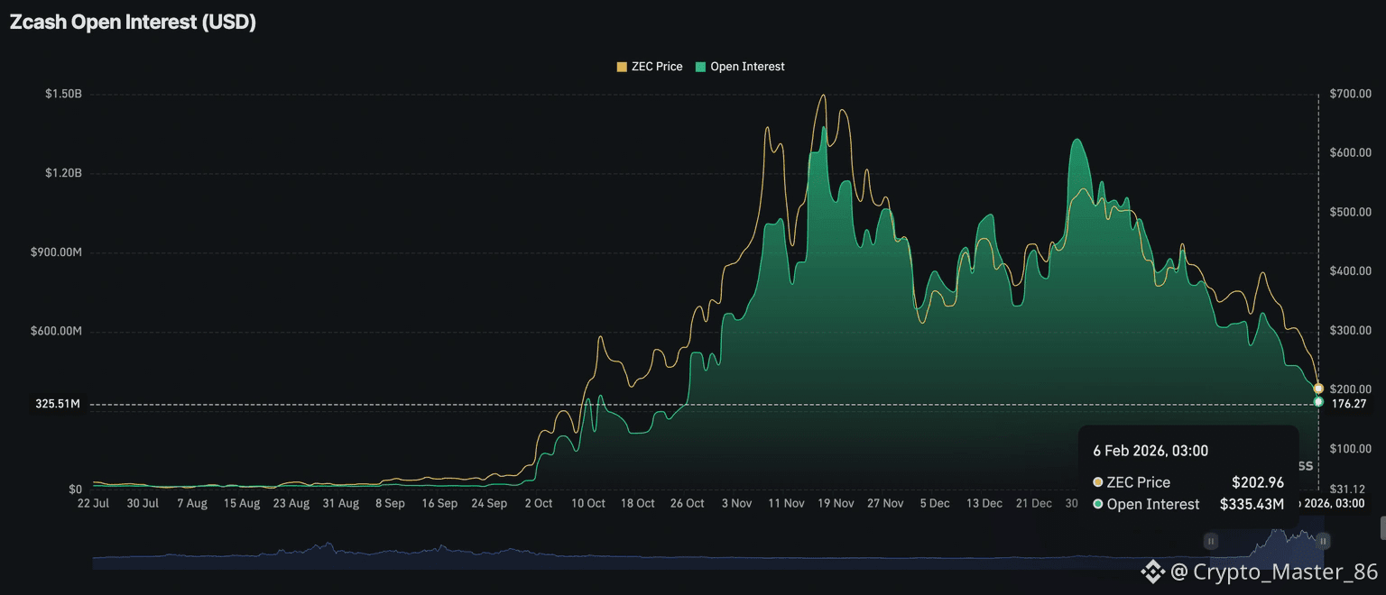 Đà tăng của Zcash diễn ra song song với sự sụt giảm của hợp đồng mở (open interest) trên thị trường futures. Open interest ZEC giảm xuống còn khoảng 335 triệu USD, so với 396 triệu USD của ngày trước đó. Xu hướng suy giảm dai dẳng này, đặc biệt so với mức đỉnh kỷ lục 1,38 tỷ USD hồi tháng 11, cho thấy niềm tin của trader vào khả năng duy trì xu hướng tăng vẫn khá mong manh. Để củng cố kịch bản tích cực, open interest cần tăng trở lại cùng với giá, qua đó mở ra khả năng kiểm định lại vùng cung 300 USD.