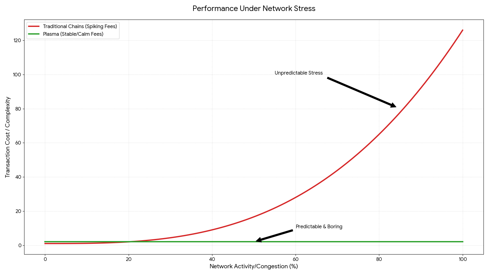 The problem Plasma is solving is not about maximum performance. It is about consistency. Many chains perform well when activity is low. The real test comes when usage grows and markets become noisy. That is when unpredictability shows up. Fees spike. Transfers slow down. Apps behave differently. For businesses and everyday users this is a serious issue. You cannot build reliable systems on top of uncertainty.