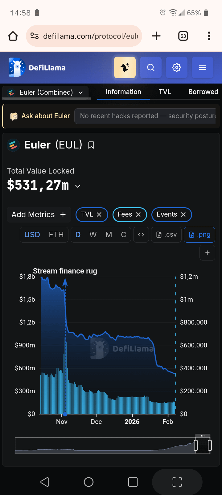 $EUL Do mês de novembro até agora EULER continua com mesmo TVL, convicção de investidores o que caiu foi preço do $ETH ...fazendo "visualmente" o TVL parece que caiu.
