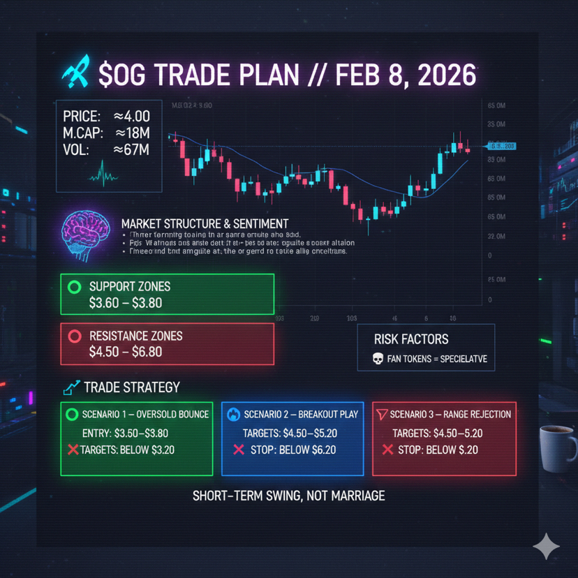 ⢠The Nuance: $OG often moves on fan engagement cycles or sudden "flash-pump" liquidity. Right now, the RSI is screaming "oversold," and the price action is carving out a definitive floor.