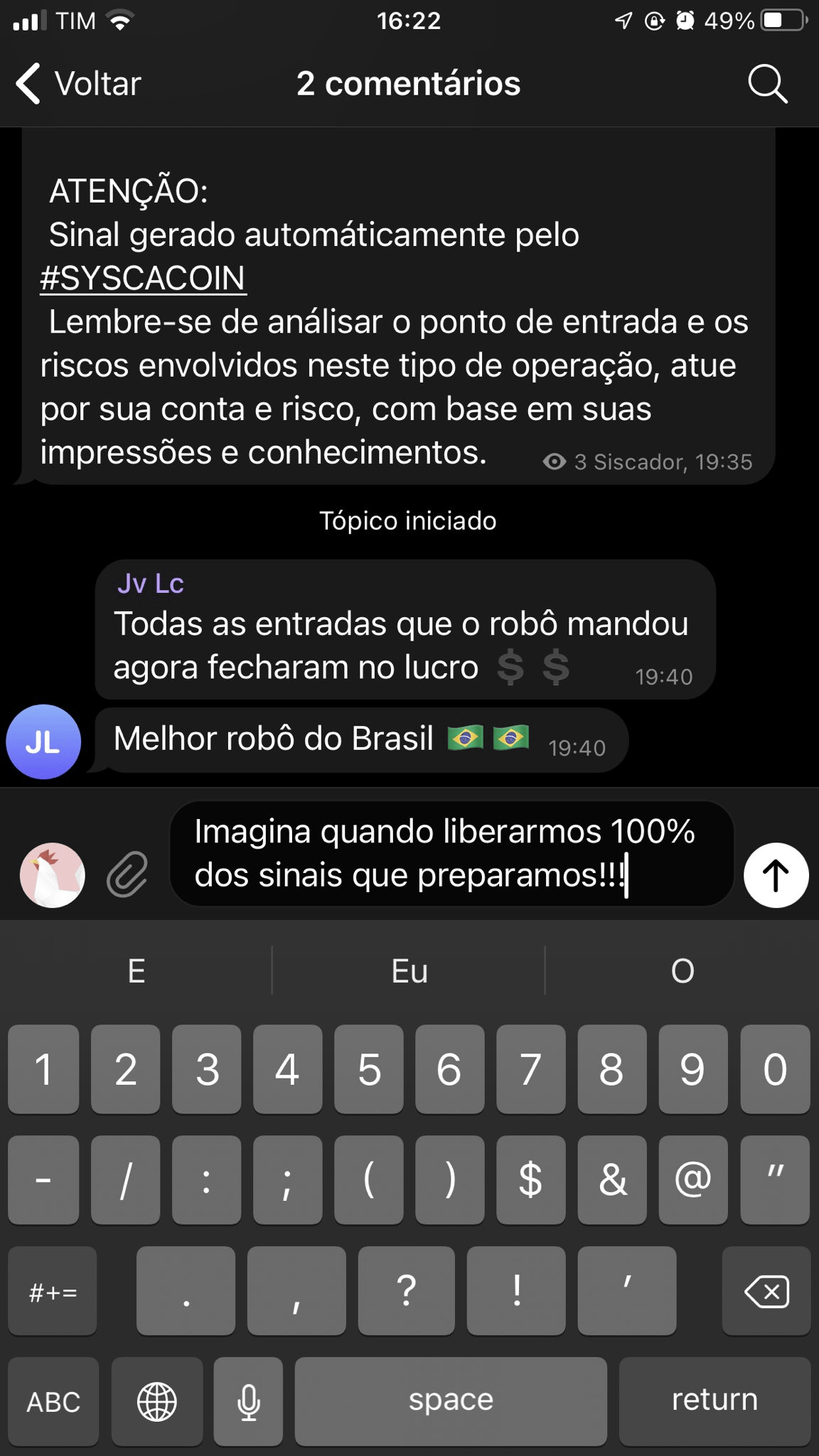 Olhando o bot operar.