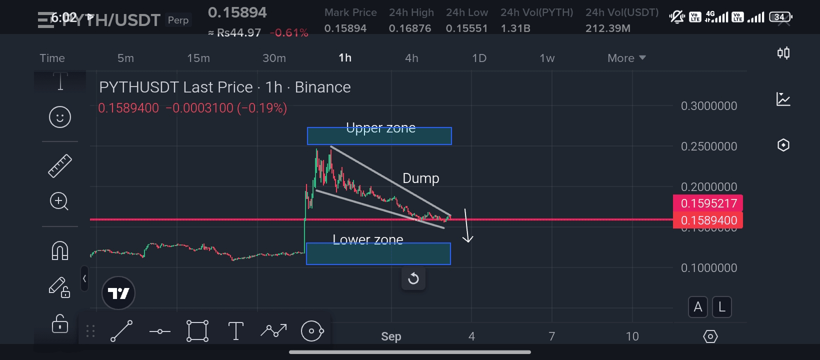 Traderi, ochii aici 👀 – PYTH a arătat un model clasic de canal descendent după pomparea sa bruscă și dump-ul ulterior. Să analizăm acest lucru: