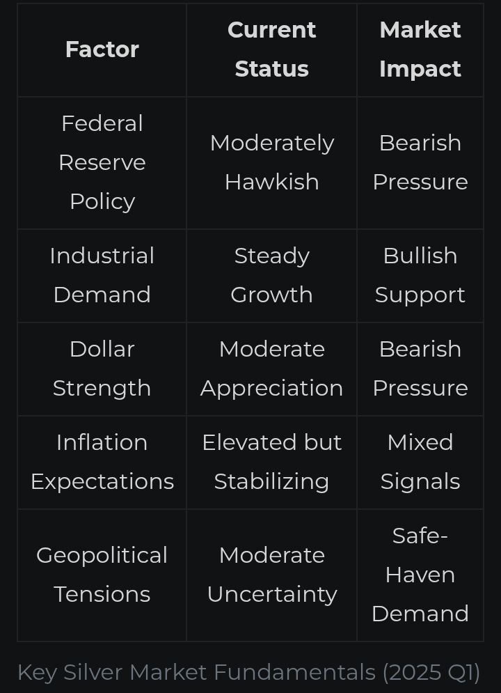 Mai mulți factori macroeconomici influențează acțiunea actuală a prețului argintului. Politicile băncilor centrale rămân cele mai importante dintre acești factori. Poziția monetară a Federal Reserve afectează direct mărfurile denominate în dolari, cum ar fi argintul. Minutele recente ale Comitetului Federal pentru Piața Deschisă dezvăluie îngrijorări continue cu privire la persistența inflației.