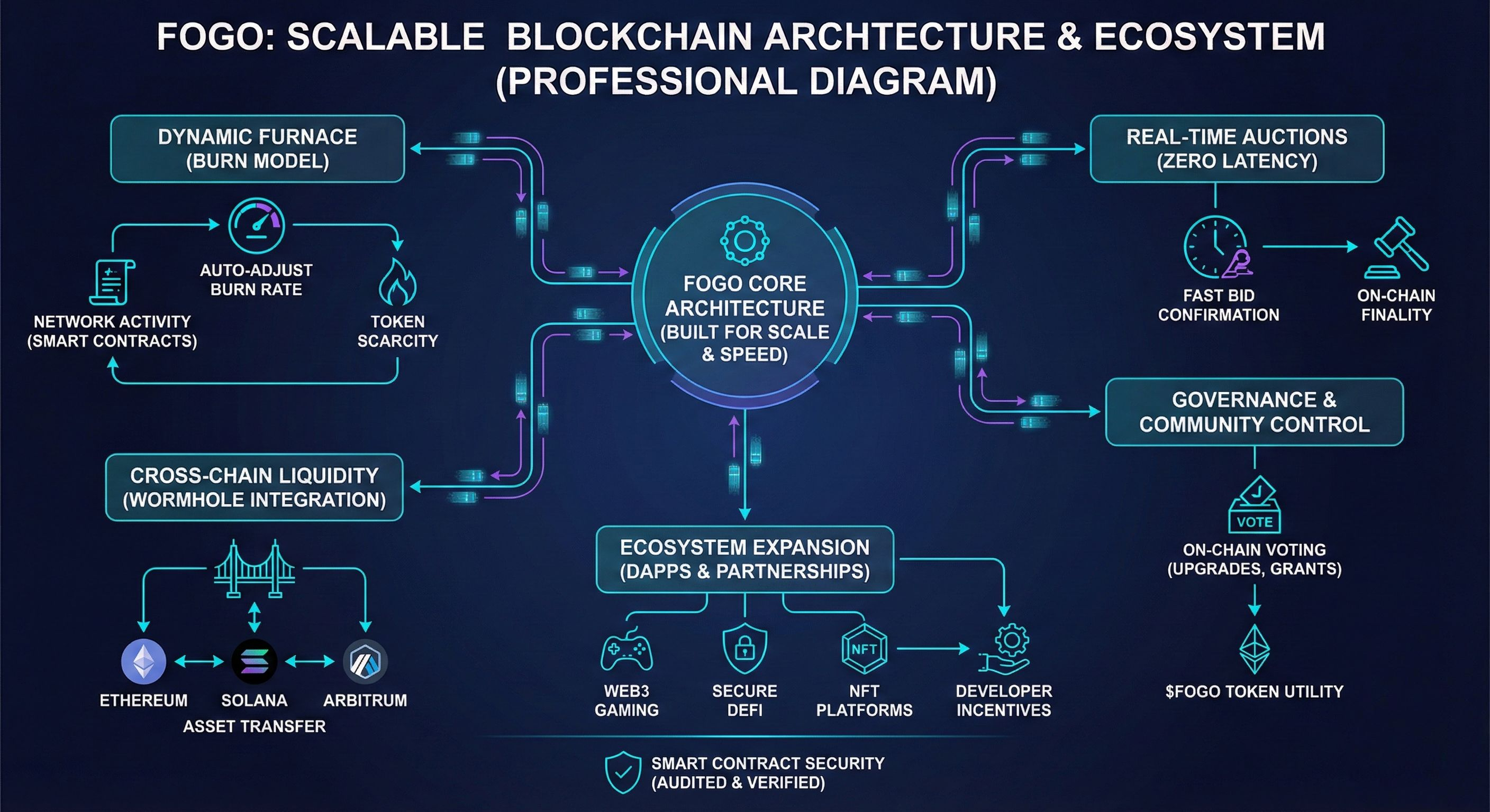 Tokenomics wale section mein yeh part mujhe sabse interesting aur smart laga. Crypto mein inflation ek sabse badi problem hoti hai jisse token ki value gir jati hai. Fogo ne isko tackle karne ke liye apna "Dynamic Furnace" mechanism introduce kiya hai. Yeh koi normal burn model nahi hai jahan team khud decide karke fix amount jalati hai. "Dynamic" ka matlab hai ki network ki activity ke hisaab se token burn rate automatically adjust hota hai. Agar chain pe smart contract transactions aur activity zyada hain, toh burn rate naturally fast ho jayega. Yeh pura system unke verified smart contract mein hardcoded hai, meaning no one from the developer team can manipulate it manually. Isse token ki long-term scarcity preserve hoti hai without creating unnecessary fake hype.