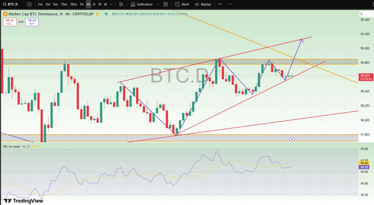 BTC.D menținând linia de suport acum altele vor scădea, așa că rămâneți alertați și luați propriile decizii.