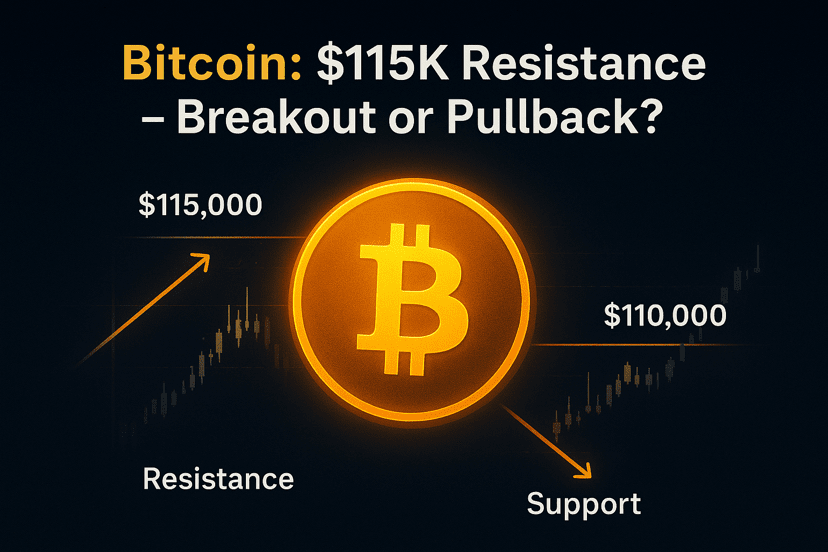 $BTC se tranzacționează într-un interval strâns în jurul valorii de 114.000 USD, cu o rezistență importantă care se apropie de 115.000–115.500 USD.