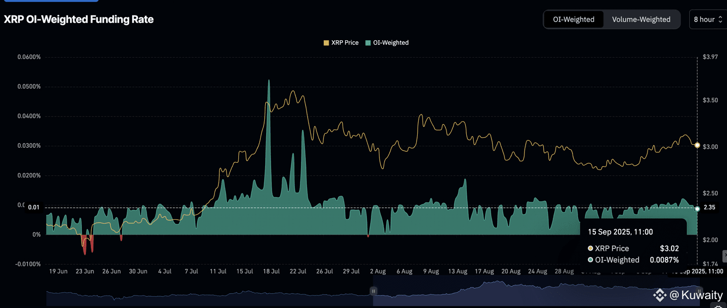 معدل التمويل الموزون على الفائدة المفتوحة لـ XRP | المصدر: CoinGlass