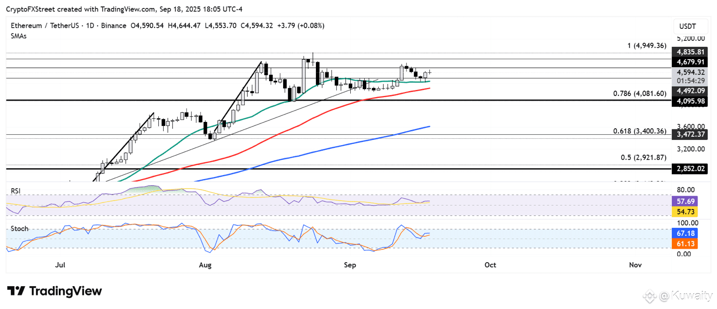 توقعات سعر الإيثريوم: الإيثريوم يرتد من المتوسط المتحرك البسيط لمدة 20 يومًا لكنه يواجه ضغطًا بالقرب من 4600 دولار