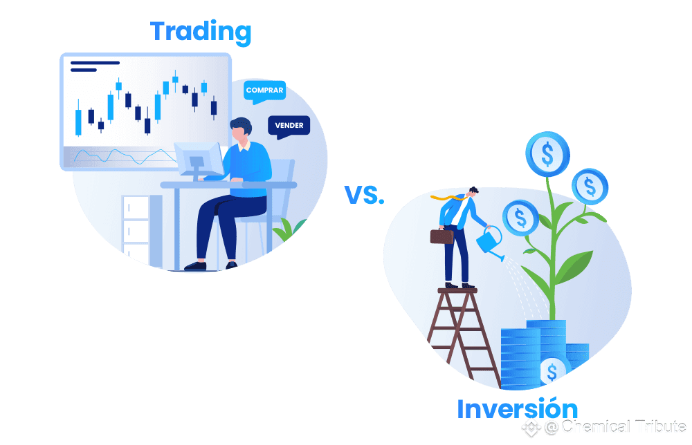 Imagina que tu plata es un personaje de videojuego 🎮: puede ser un ninja ⚔️ que salta de operación en operación (trader 🕹️) o un agricultor 👩‍🌾 que siembra monedas 🪙 y cosecha premios años después (inversión 🌱).
