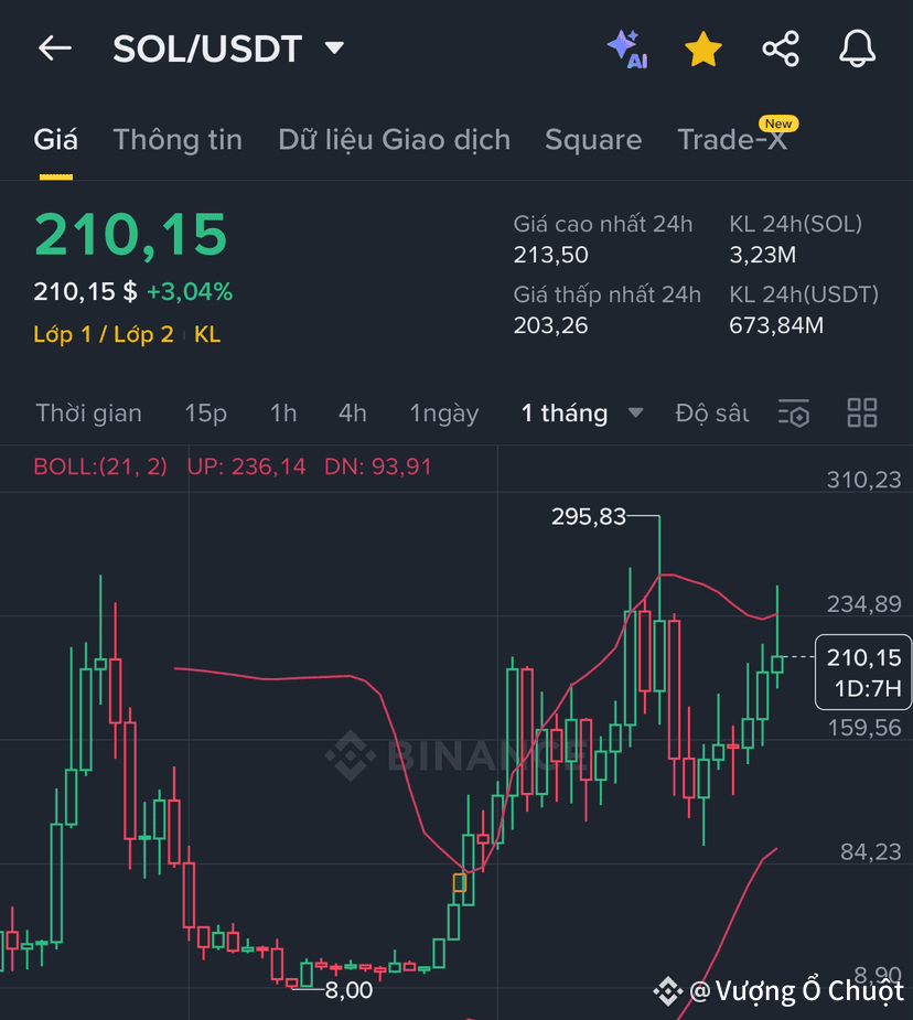 SOL đang có nền tảng cơ bản tốt, hợp tác mở rộng và động lực kỹ thuật hỗ trợ xu hướng tăng dài hạn. Tuy nhiên, cần lưu ý rủi ro từ cấu trúc chuỗi đơn và biến động dòng vốn ngắn hạn. Với mức giá hiện tại 210.44 USDT, SOL có thể là lựa chọn hàng đầu cho danh mục dài hạn, đặc biệt khi phân bổ hợp lý cùng BTC và ETH để tối ưu hóa lợi nhuận và giảm thiểu rủi ro hệ thống.