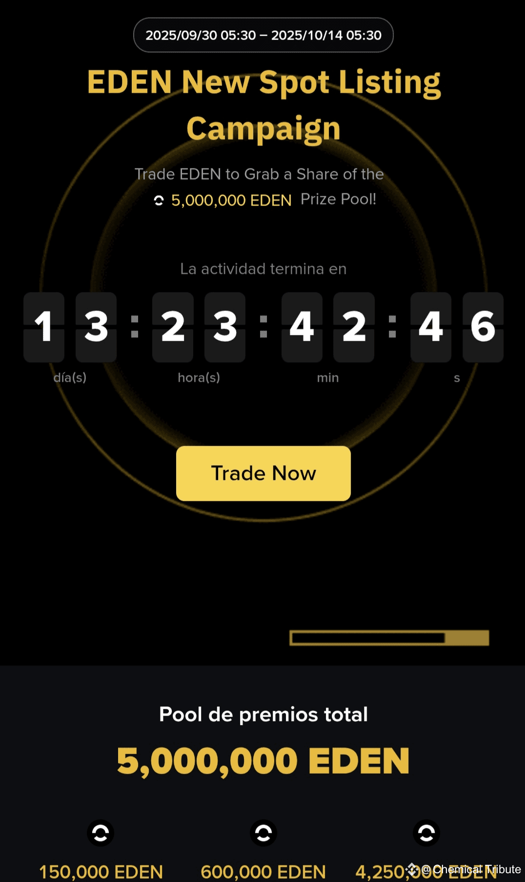 Si ya tienes tus tokens #EDEN del airdrop o planeas comprar/vender EDEN a partir de las 11:00 UTC, esta campaña te ofrece una oportunidad para obtener tokens EDEN adicionales si generas un volumen de trading significativo o cumples con las tareas específicas de la promoción.
