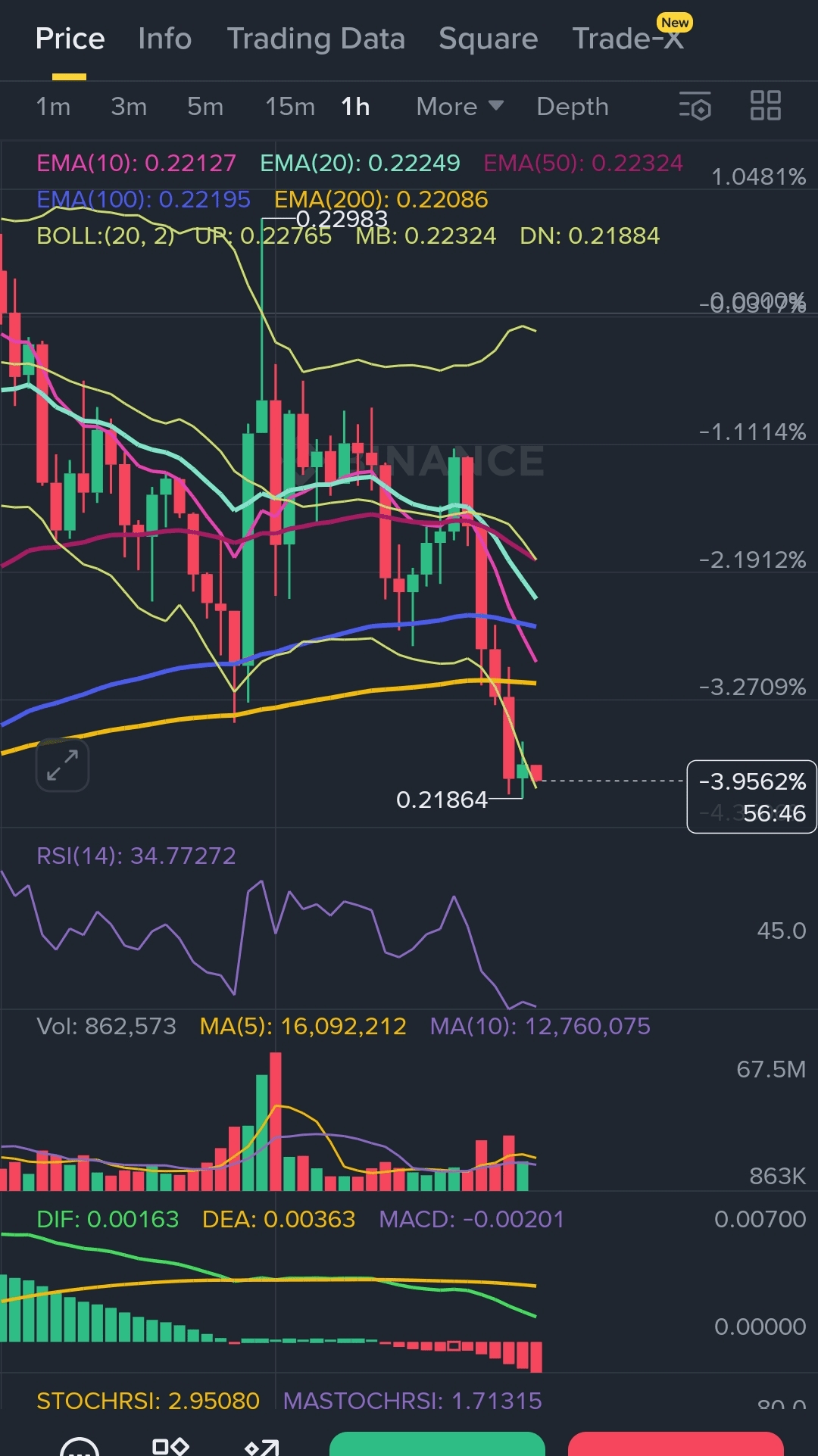 Preț:0.21915 | Schimbare 24h: -1.66% 📉 | Rata de finanțare: 0.01% (Neutru)