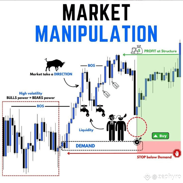 Market manipulation refers to tactics by big players (institutions or “smart money”) to influence price direction, trap retail traders, and collect liquidity for their large positions. It often causes fakeouts and reversals that catch small traders off guard.