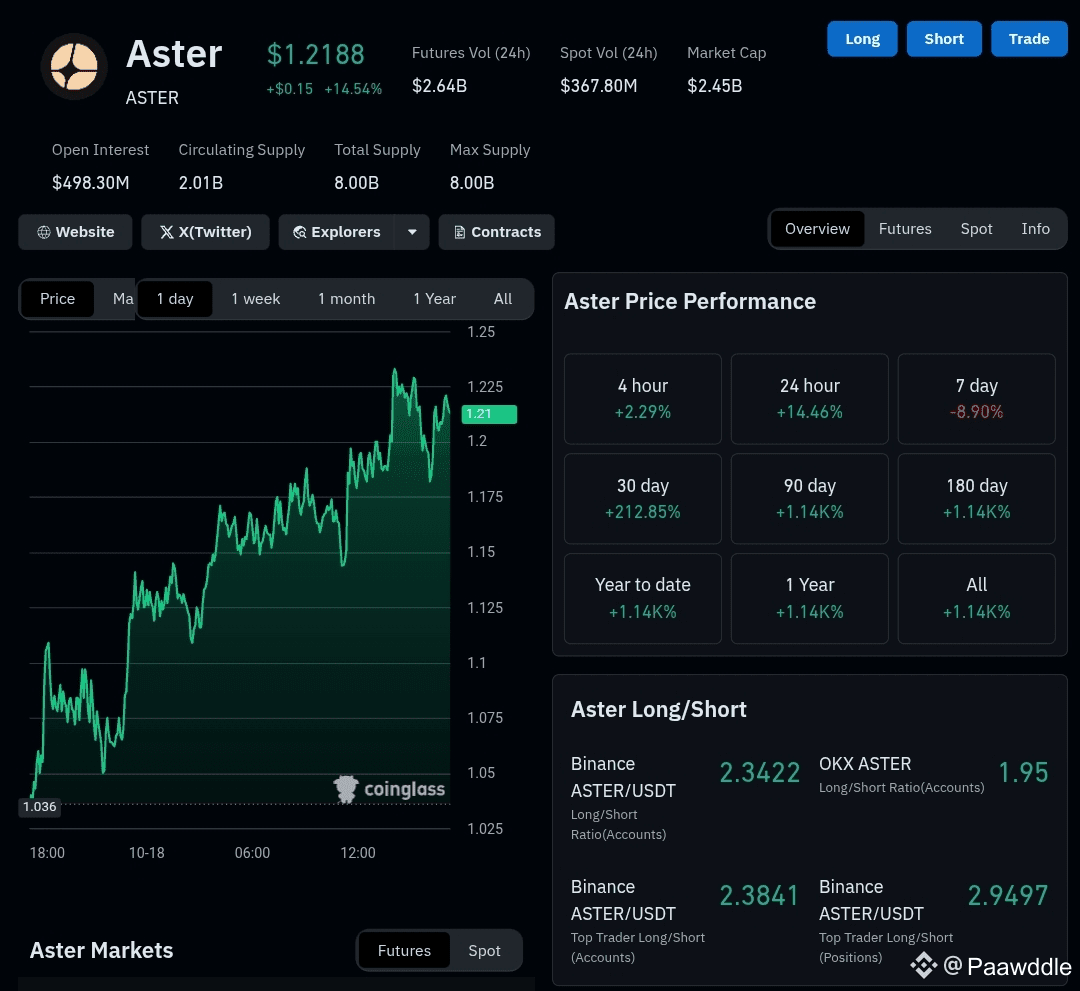Massive futures volume + high open interest signal that traders are loading up on ASTER and are wagering big. The size of the market suggests potential for rapid moves, either up or down this is not a quiet altcoin.Smart money appears active, and the conditions for a breakout are aligning.