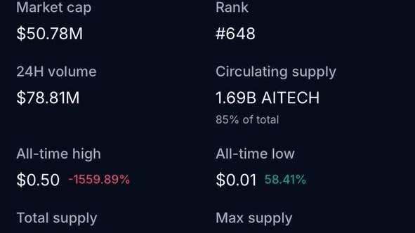 $AITECH este în prezent Top 3 pe mai multe platforme de date crypto: