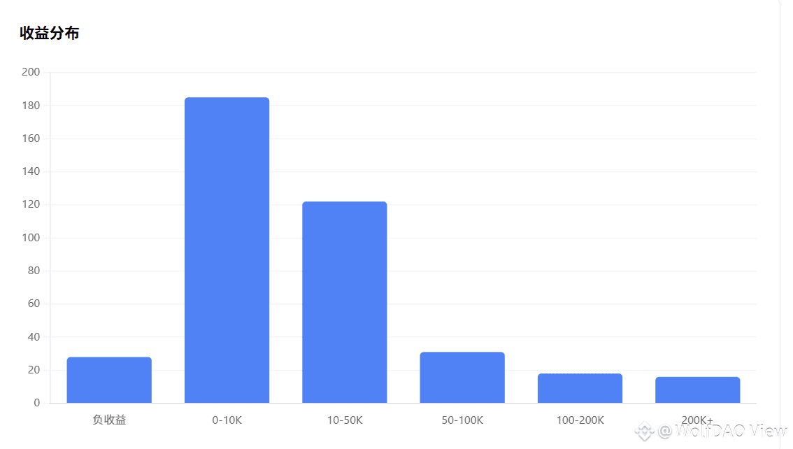 约120人收益在10-50K美元之间,构成了相对活跃的中坚力量;