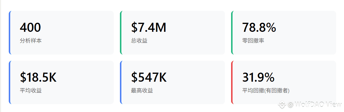这400位盈利带单员总共获得了740万美元的收益,人均盈利1.85万美元,其中表现最好的交易员单人斩获54.7万美元。最引人注目的是78.8%的零回撤率,这意味着超过三分之二的盈利者在整个暴跌过程中完全没有经历账户回撤。
