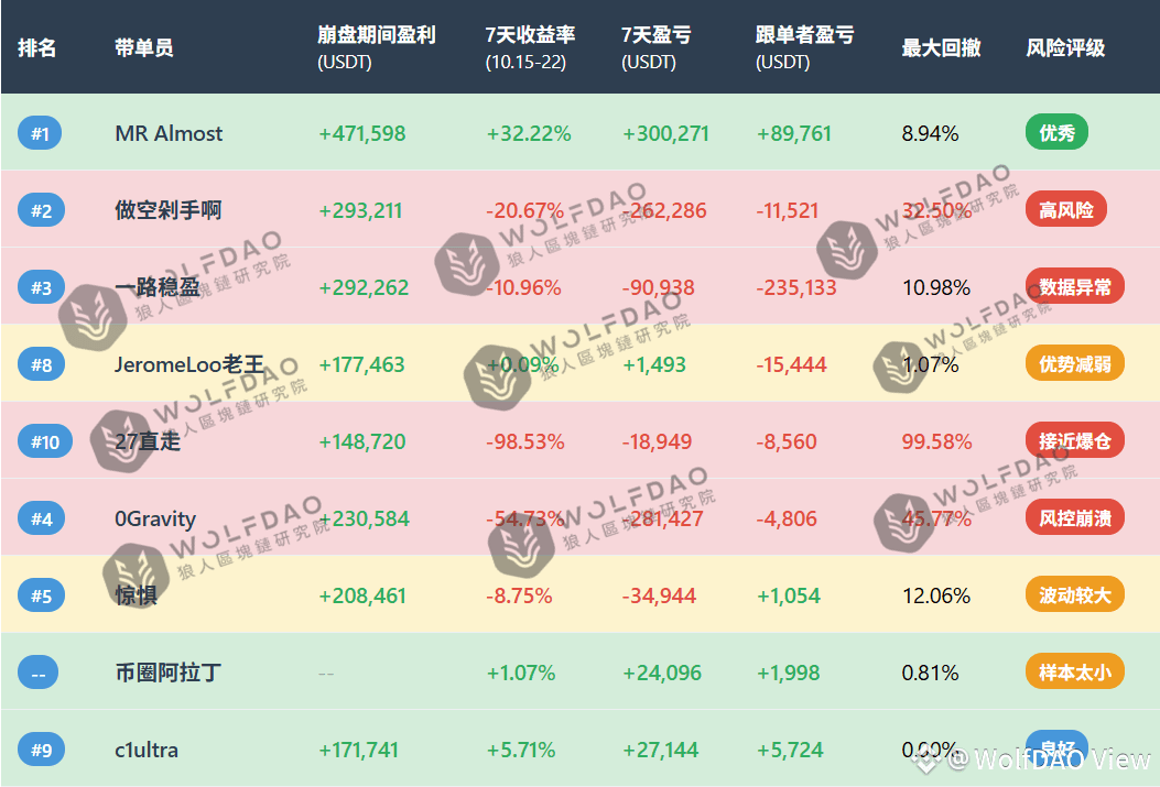 为了更好探究这点我们继续跟进头部交易员们近期(10,15-10.22)的表现(Karanyu已经检索不到)