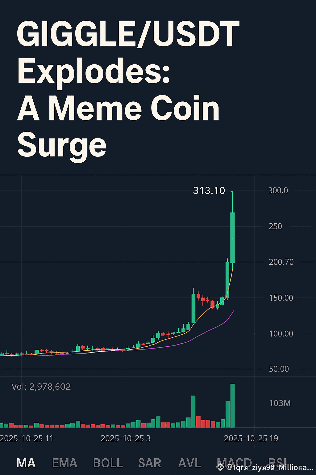 Within hours, $GIGGLE skyrocketed from a low of 69.10 USDT to an astonishing 313.10 USDT, marking an eye-popping +219% surge.