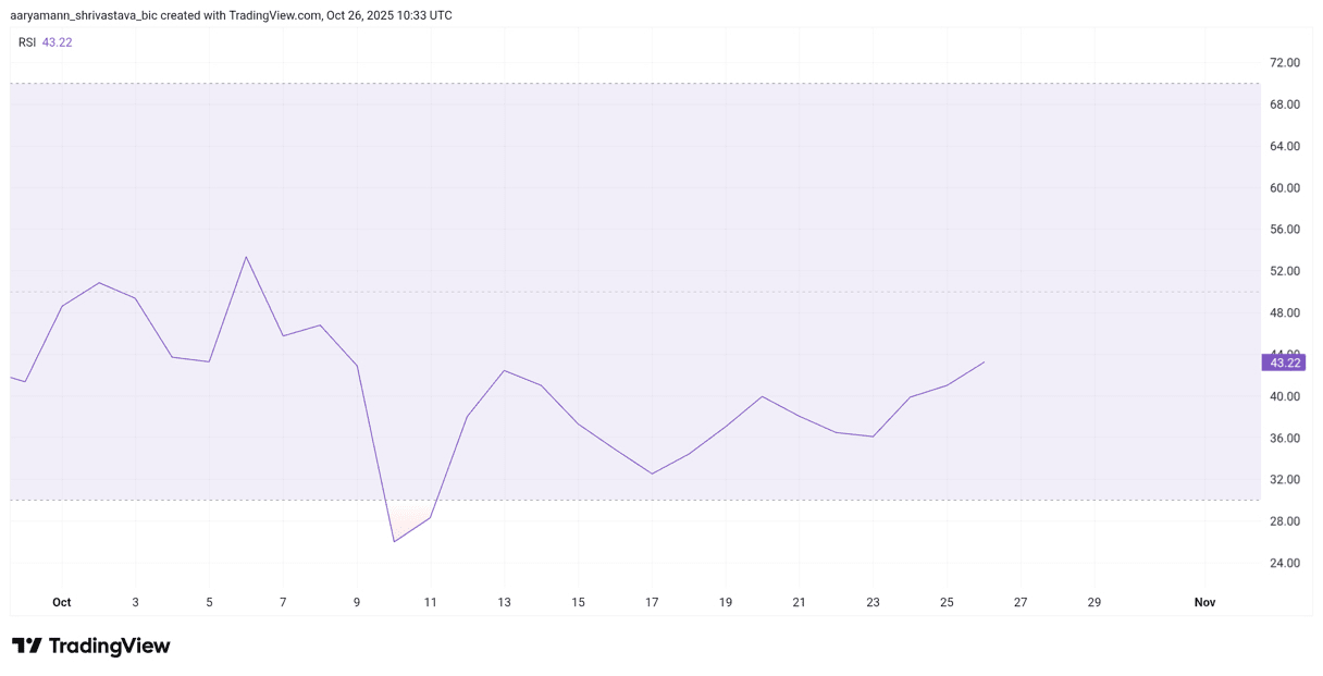 Cu toate acestea, indicele forței relative rămâne sub marca neutră de 50,0, ceea ce sugerează că impulsul ascendent nu a fost încă pe deplin confirmat.